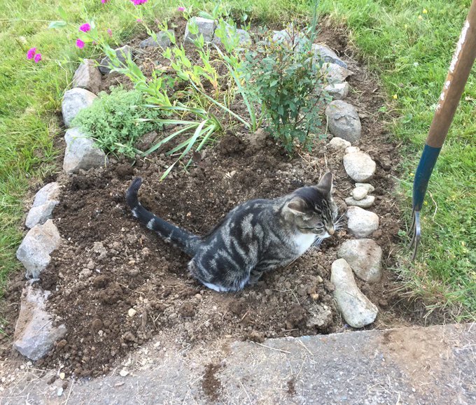 I dug a hole to plant a melon, and @CatBazinga instantly decided to add fertilizer. #Bazinga! https://t.co/EhW2uELJnr